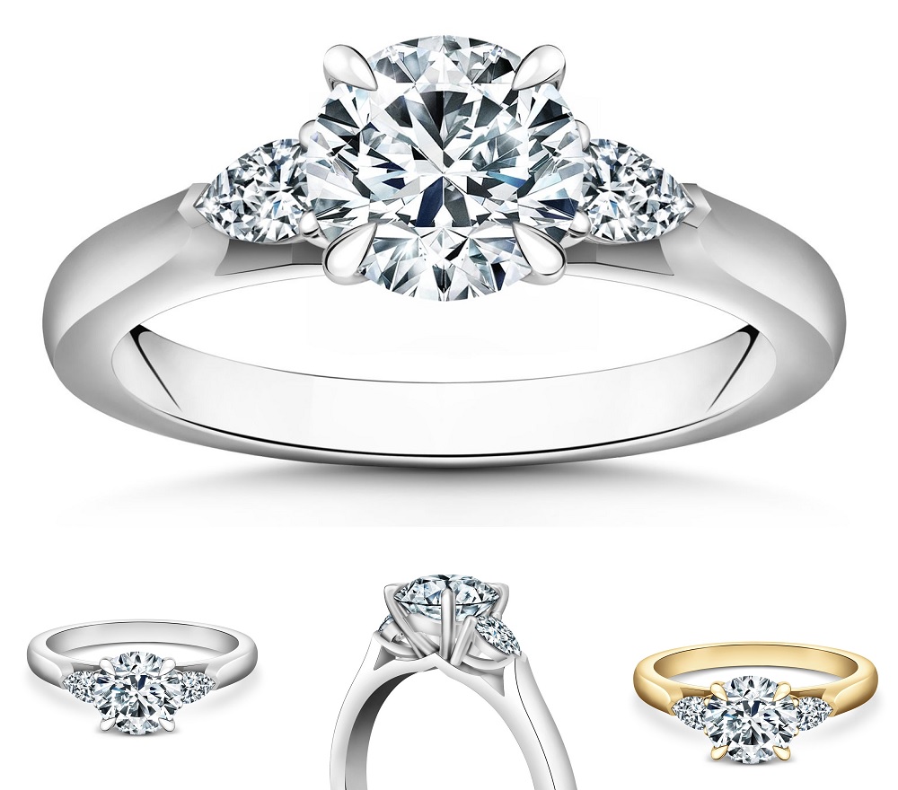 Sleek 3 stone Crossover Pave Round Cut Diamond Sidestone Engagement Ring - 938 more >>