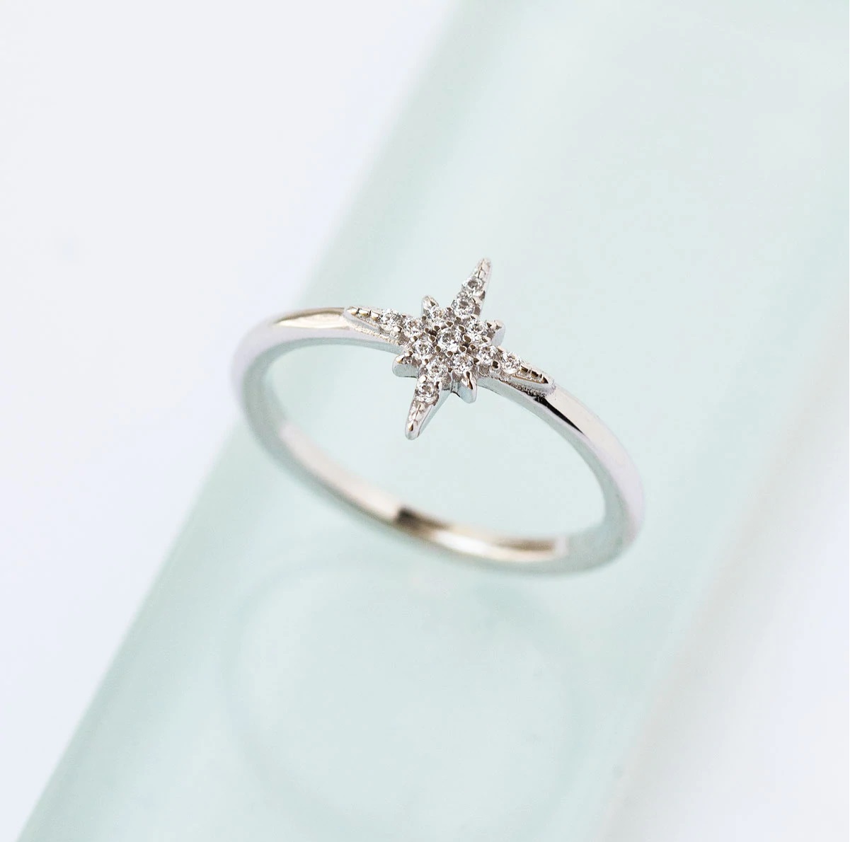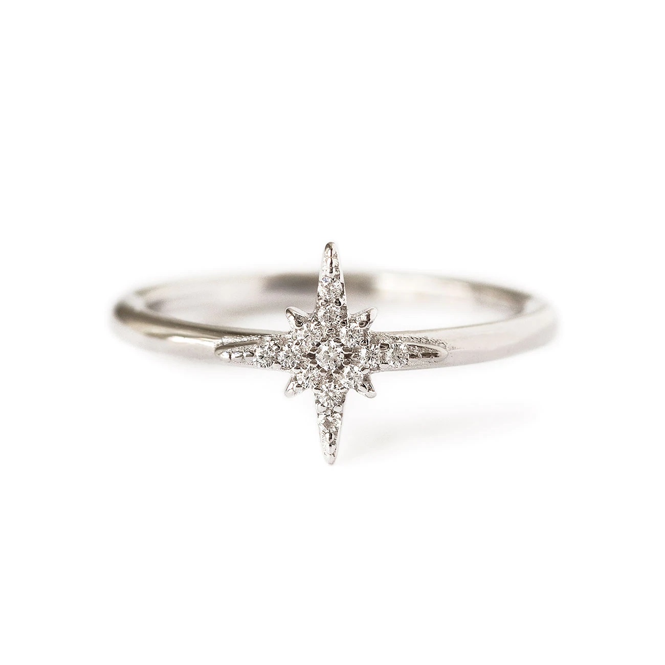 pavé starburst Crossover Pave Round Cut Diamond Sidestone Engagement Ring - 942 Stering Silver CZ diamond